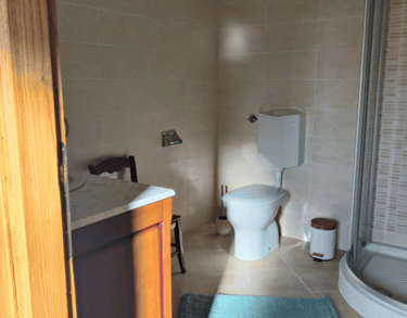 Ces deux chambres se rejoignent vers la salle de douche centrale, wc.