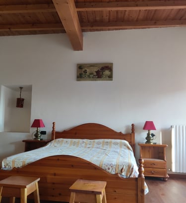Al piano superiore troverete la zona notte con una grande camera da letto di 25m2 e un'altra camera con due letti a castello, 10m 2, e un angolo divano.