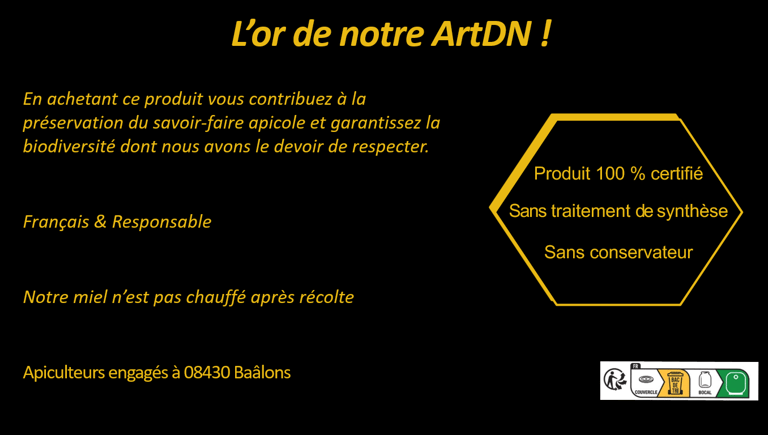 Le miel est exclusivement mis en pot en verre pour éviter le transfert des dérivés plastiques et ainsi garantir une qualité, une authenticité et un goût parfait.